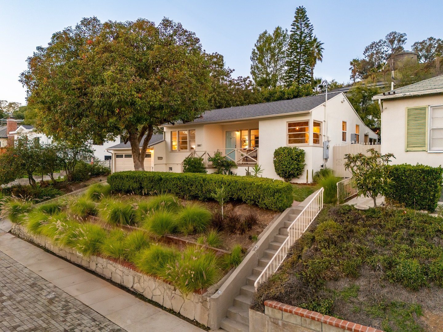 Restored 1938 charmer in Glassell Park, this hillside home blends period elegance with modern comfort. Original features—Art Deco glass knobs, stained-glass windows, coved ceilings, and refinished hardwood floors—create warmth and character, while the updated kitchen, new ensuite bath, and restored wood windows elevate everyday living. A lush backyard with pergola, lemon and lime trees, and multiple outdoor lounging areas offers an ideal retreat.
